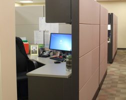 In addition to an architecturally appealing exterior, the Vanity Fair Building provided plenty of space and multiple rooms to accommodate the large team of Reading Health employees. The Reading Health group ultimately wanted uniform product that was built to plan, however, many of the rooms were long and narrow, requiring some planning of the workstation layouts and sizes that they were looking to create. The EthoSource Sales Rep, Designer and Project Manager on the job were required to attend weekly meetings and contribute ideas leading up to their final decision and agreement. Through active consultation throughout the entire process, both teams were able to come up with the right solution for the company’s needs. [ezcol_1half]