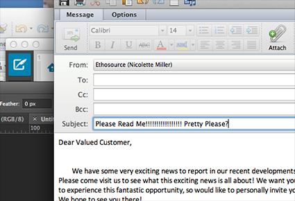 For emails, specific words and punctuation will get you an automatic trip to the trash bin.   Often people have their email or even just their own minds programmed to send certain words like “free,” “buy,” “Win,” etc. straight to the trash.  Other things to avoid are all capital letters and exclamation points because they are typically associated with spam.  Make your subject is original with words that stand out from typical junk mail.